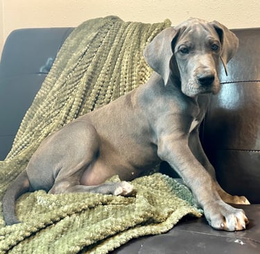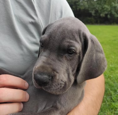 "We were thrilled to find such a caring and professional breeder. Pawsome Great Dane ensured our puppy had up-to-date vaccinations and provided a health guarantee, which gave us peace of mind. Milo has been with us for a few months now, and he’s thriving. I recommend Pawsome to anyone looking for a well-bred and loving Great Dane!"